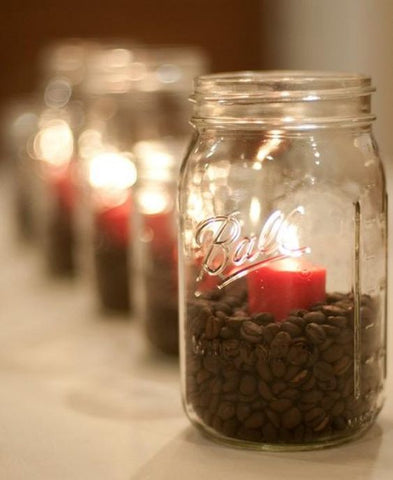 Fill a glass vase with coffee beans and baubles and place a large candle in the centre to make a festive centrepiece to please any coffee lover.
