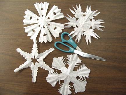 Coffee filters make excellent snowflakes. Simply fold 4 times and cut out some shapes, unfold and viola… a snowflake. Great for keeping the kids entertained and look great hung in the window or even on the tree.