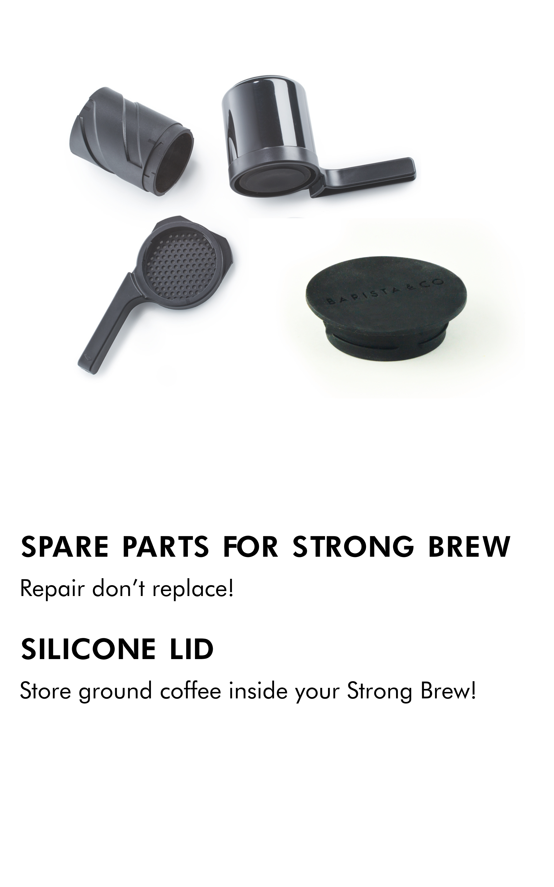 The Strong Brew has a hidden comportment in the upper handles that is ideal for storing ground coffee! If you lose your lid, simply grab a spare one.