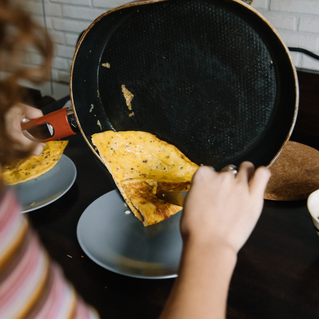 Slide the omelette onto a plate and cut it into slices.